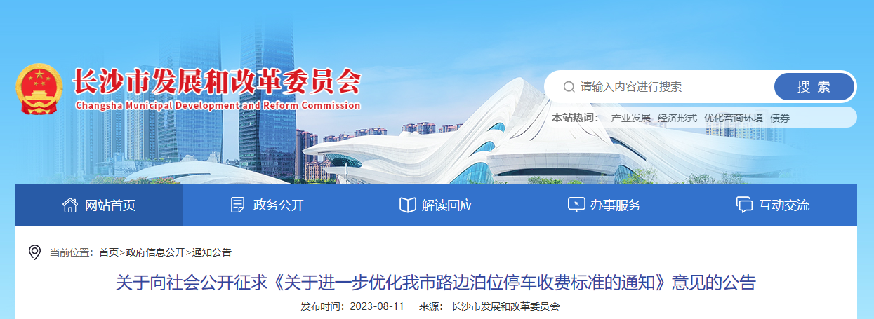 近年来,长沙机动车保有量高速增长,停车泊位需求越来越大。日前,长沙市发改委发布关于向社会公开征求《关于进一步优化长沙市路边泊位停车收费标准的通知》(以下简称《通知》)意见的公告。本通知自2023年9月1日起执行,文件有效期5年。
