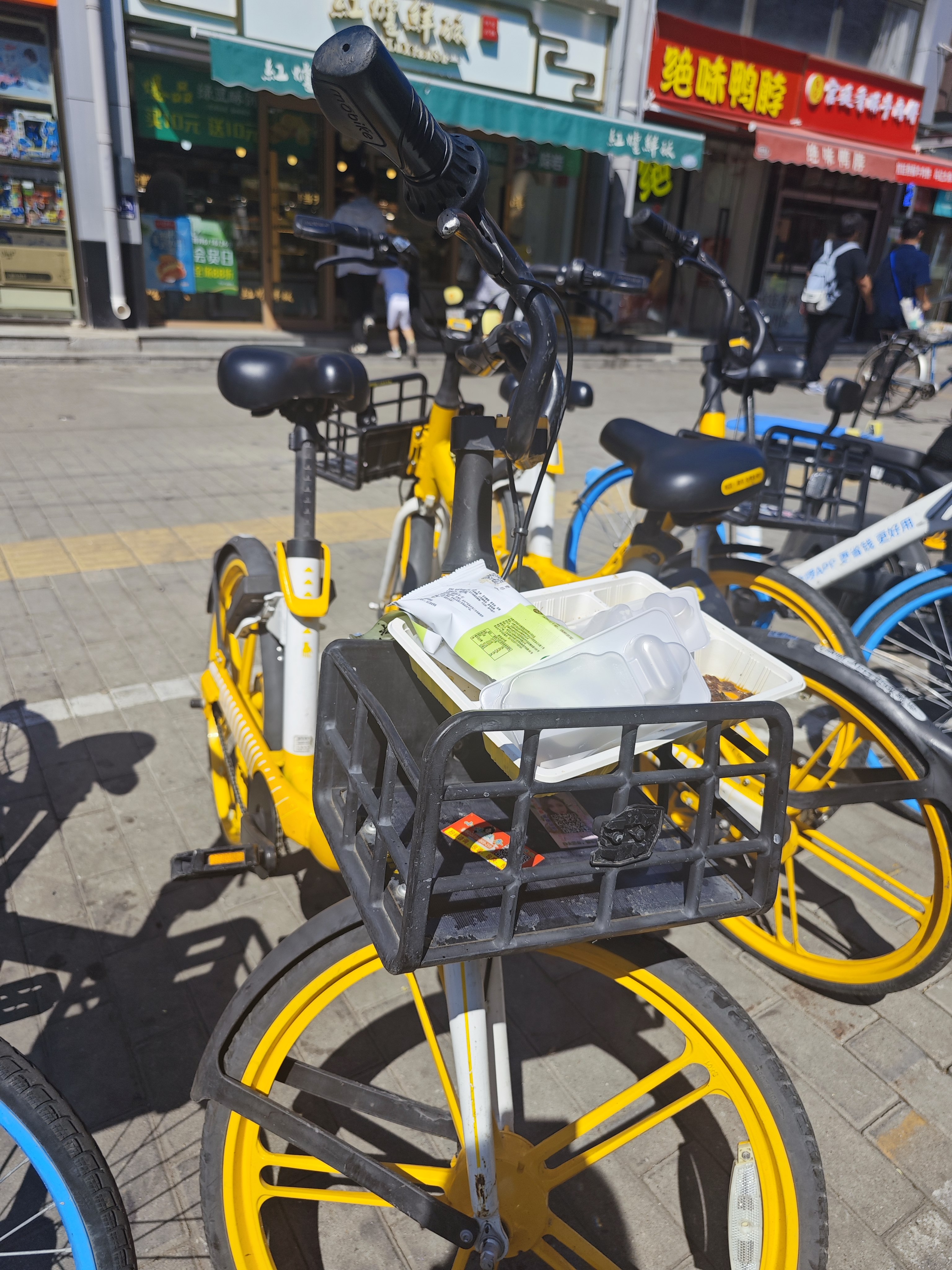在交道口东大街上,一共享单车车筐上,盖着塑料饭盒,饭盒里飘着残留的油汤,饭盒上面,还放着冰淇淋包装袋……即便是路边仅剩下这一辆单车,一位市民走上前,犹豫了片刻还是离开了。在半个多小时内,这辆单车无人问津,直到一位保洁人员,将车筐内的垃圾清理干净后,杨女士才扫开了单车。虽然车筐空着,她还是把随身携带的袋子挂在了车把手上。当被问及为何不将袋子放进车筐,杨女士说:“都有阴影了,谁知道车筐里之前放过什么垃圾,别说放包了,连一次性的塑料袋我也不想放进去。”