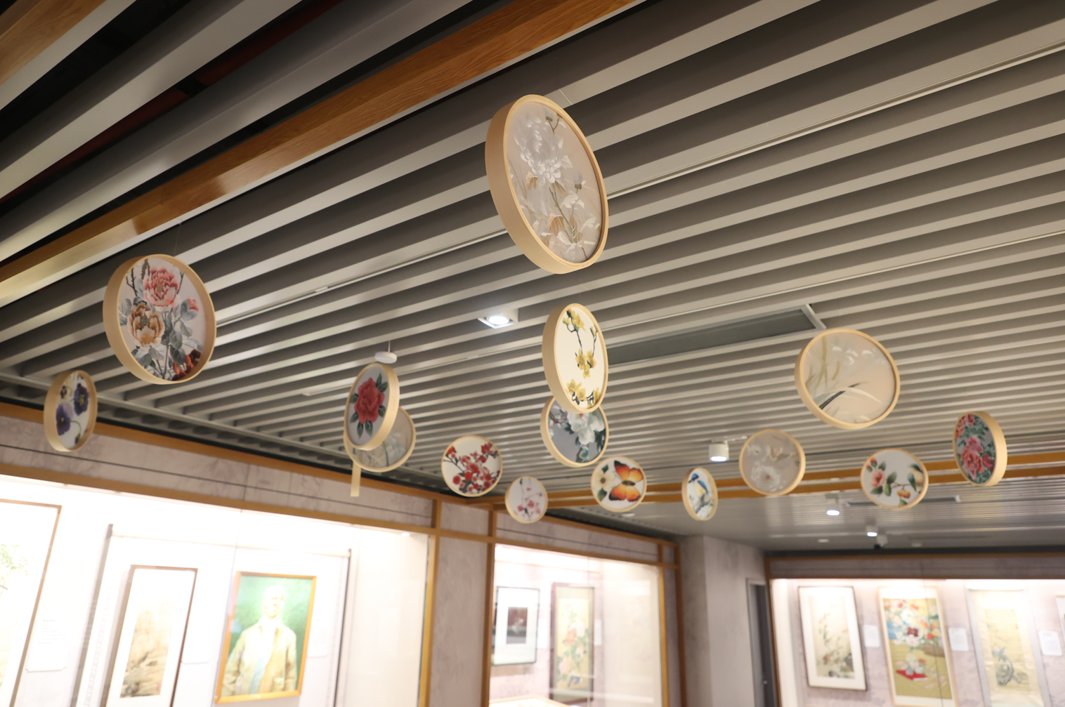“飞针引绮彩”通过近20件织绣作品集中展示苏绣艺术成就,涵盖盘金绣、打籽绣、乱针绣、单面绣、双面绣等多个类别。