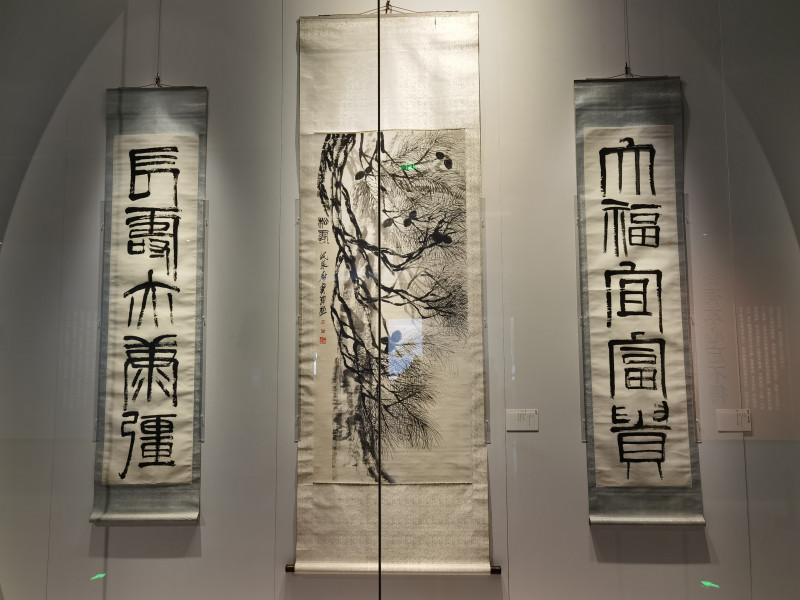 齐白石一生跨越百年,饱经旧社会的离乱,终于在鲐背之年步入了新中国。展览展出了齐白石晚年创作的《和平图》。老人通过描绘悠闲自在的鸽子,从而营造出一个安宁祥和的境界。他用绘画祝福祖国万岁、祝福世界和平,并向世界和平理事会献礼。为了画好鸽子,齐白石还在家里饲养鸽子,通过观察写生、摸索研习,最终创造出经典的和平鸽形象。