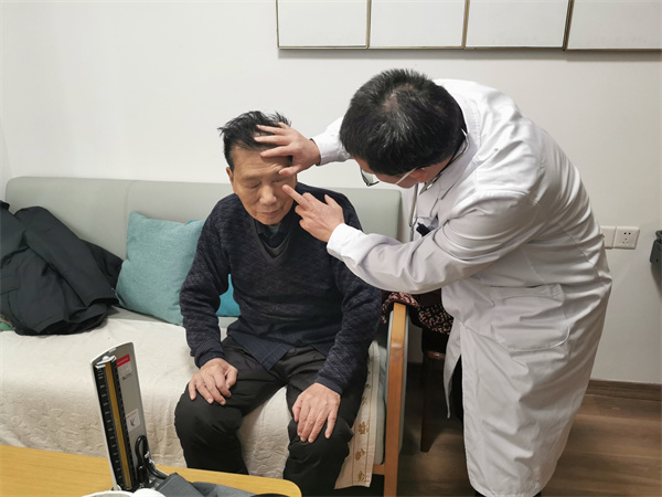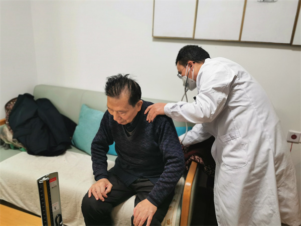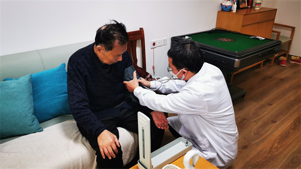 “曾医生来了,辛苦啦。”1月11日上午,湖南株洲云龙示范区,住在康养楼盘凤凰谷3栋的八旬老人李文辉看到曾昭炼医生来了,立即起身相迎。曾昭炼是来给李文辉和她老伴测量血压、血氧、血糖等项目的,也给李文辉的老伴开点药治便秘等病。