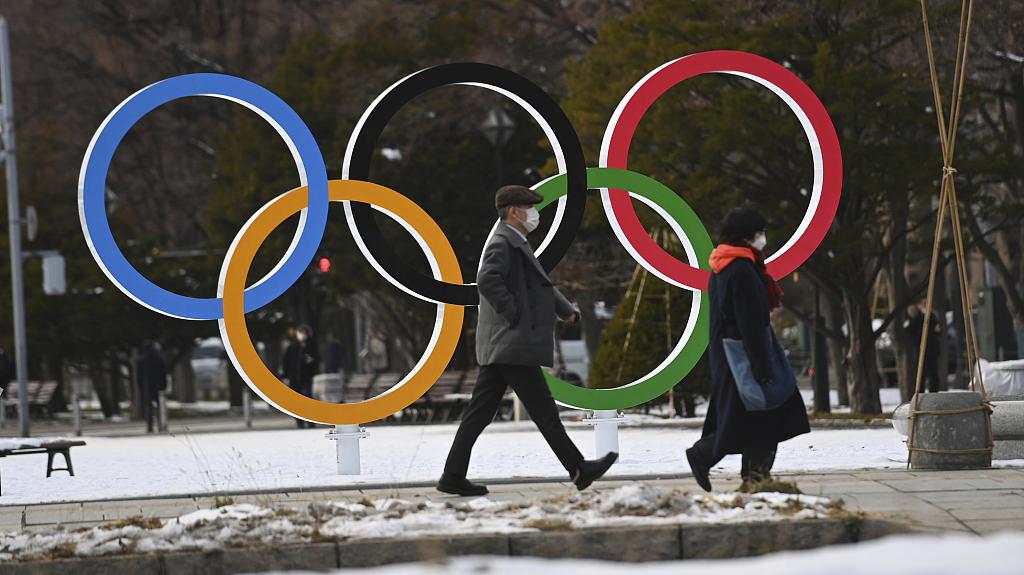 当地时间2022年12月7日,日本北海道札幌市,一公园内的奥运会象征——五环纪念碑。视觉中国 资料图