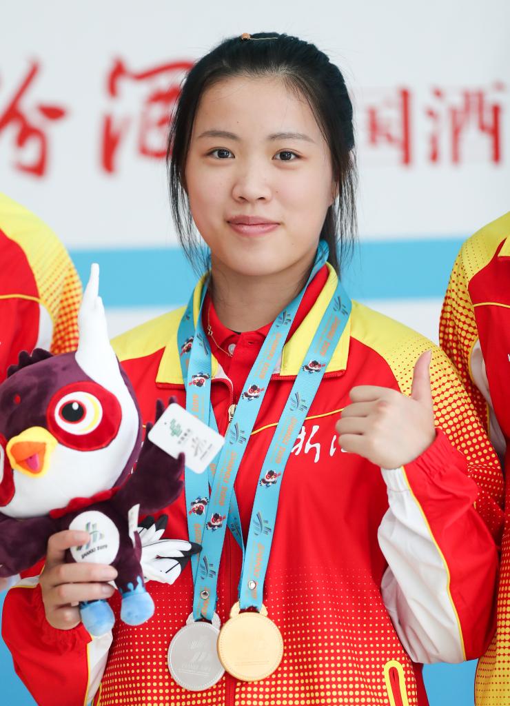 2019年8月12日,在山西太原举行的第二届全国青年运动会射击项目体校甲组女子10米气步枪个人决赛中,宁波体育运动学校选手杨倩以251.5环的总成绩获得冠军。新华社记者丁汀摄