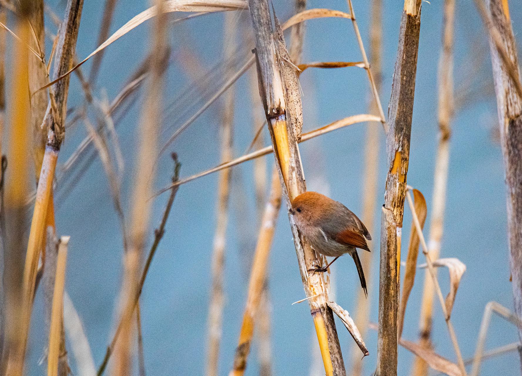 在一堆照片中,一只“肥美”的棕头鸦雀格外惹眼。“这是我下午4点10分在采桑湖外堤抓拍到的棕头鸦雀,这种鸟类很喜欢群体生活,发现了一只,旁边肯定有七八只甚至十几只。”刘科介绍,它们喜欢在小树枝上攀行,很难拍到好看和清晰的画面。这是刘科的一串连拍中捕捉到的画面,实际上这只棕头鸦雀只在原地待了不到两秒钟。