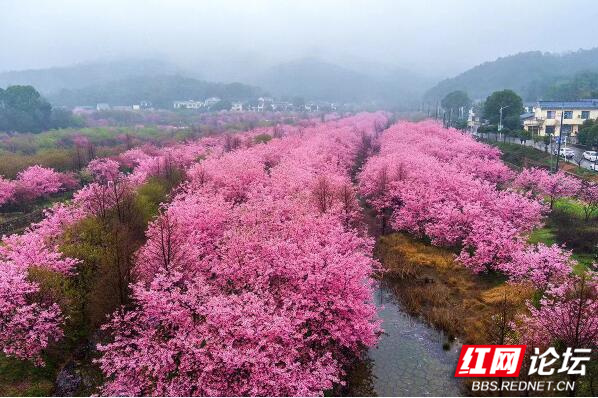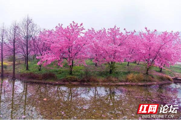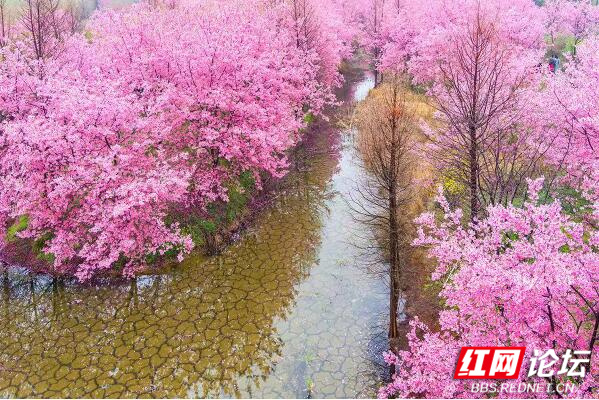 ▲图说:在长沙近郊的湘江新区白箬铺镇的光明大观园,竟藏了一片如此绝美的樱花林,占地面积100多亩,有3000多棵樱花树成条状向村外延伸。每年三月樱花如期而至,灿若云霞,美如仙境。樱花园四大组团樱花次第开放,目前,园内3000株樱花到了最佳观赏期,时间可持续一个多月。