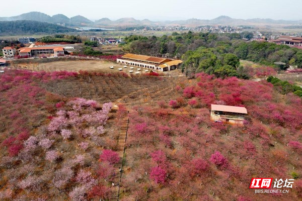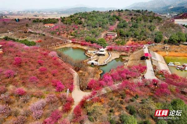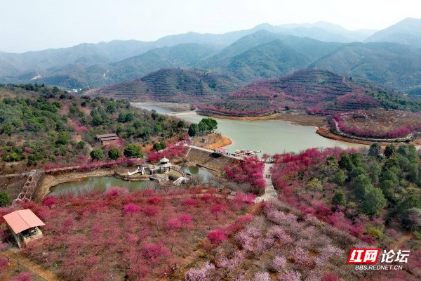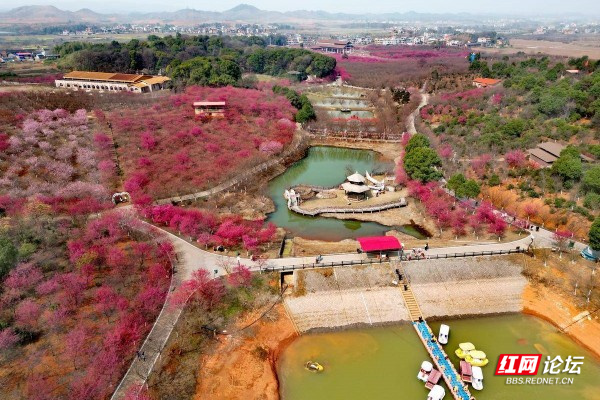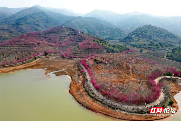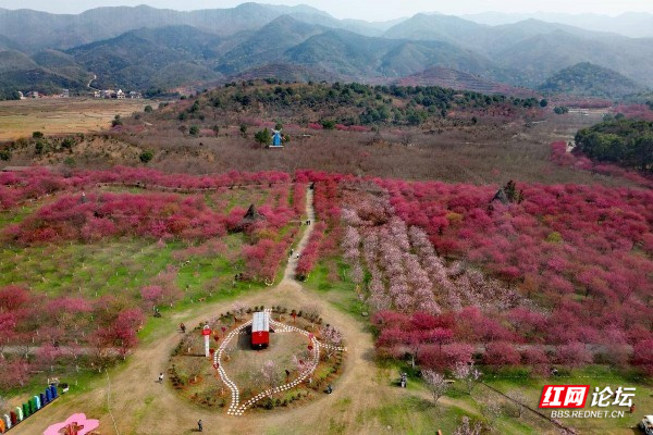 ▲图说:百万樱花园位于衡阳常宁市罗桥镇庙山村,在遵循大自然原貌基础上种植樱花2000余亩(100多万株)、油茶1500余亩,嫁接了进口台湾山茶花5000多株、台湾五角红枫5万多株等名贵苗木,修复山丘荒漠,留下天蓝、地绿、水净的美好家园。