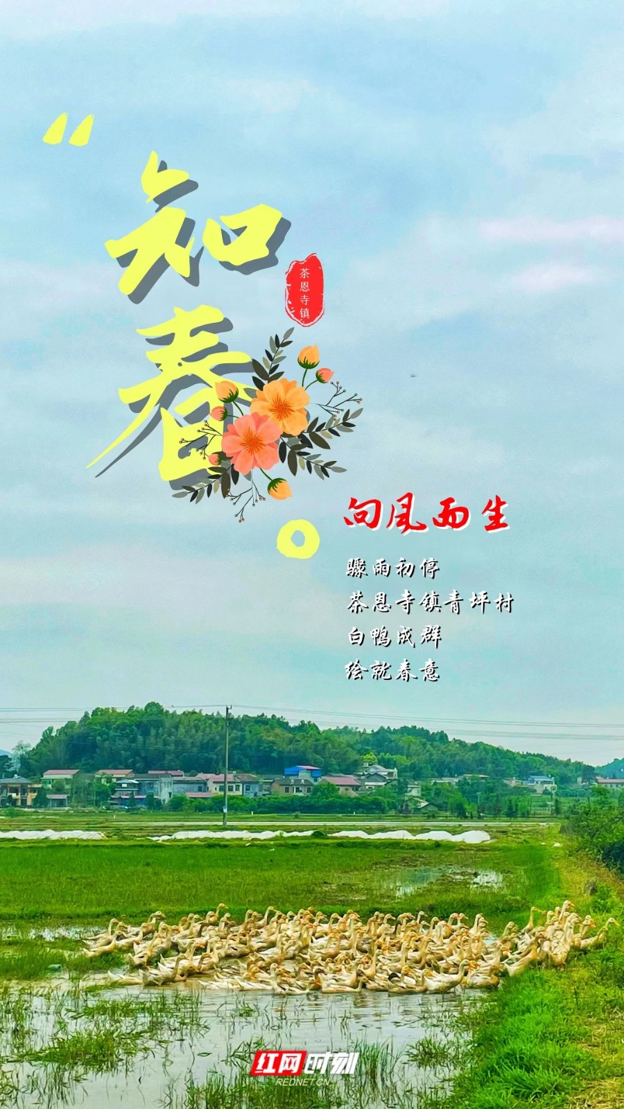 四月上旬,湘潭县茶恩寺镇青坪村的农家汇猕猴桃产业园内绿意盎然,新生的果实在枝头探着脑袋细嗅春天的气息。园外,鸭子成群,在绿水青山之下嬉闹觅食。春光中,田畴错落有致,绘就一幅绝美的农耕图景。