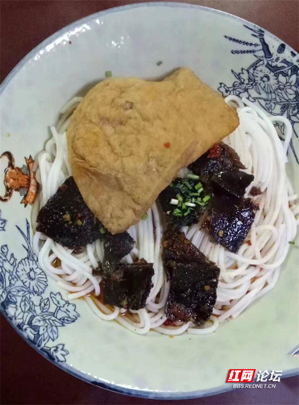 后来上了大学,在长沙这个美食的世界,吃了很多地方的粉。到过许多大学的食堂,铁道学院米粉的味道确是首屈一指,但说到吃早餐,铁道学院往民政学院去的那一条街上一家粉店(名字就叫一家粉店),吃得令人难忘,好吃的味道一直追了四年,二元一碗,和县二中的米粉价格差不多。毕业后,曾调到长沙上班,我还去追过,可惜后来那一排店面都撤了,一家粉店的老板也去別的地方发财去了。