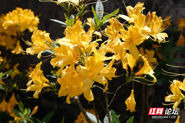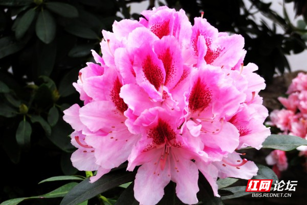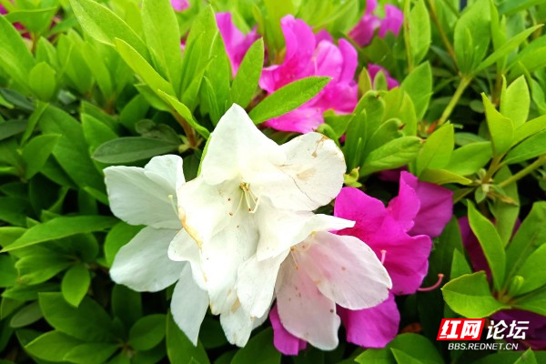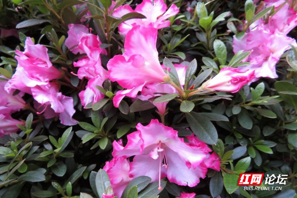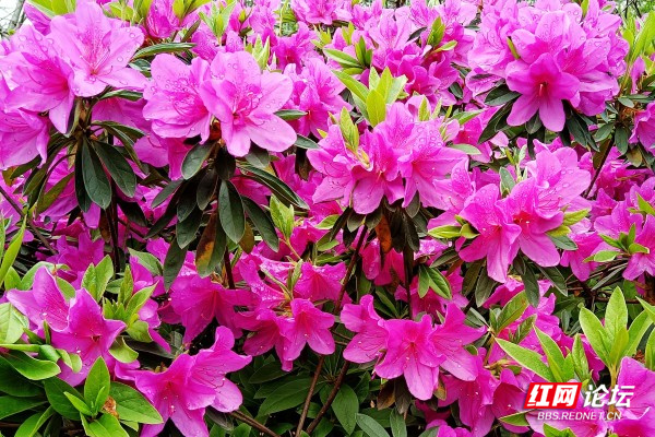 杜鹃花,又名映山红,现如今公园、街道、乡村都有人工种植的杜鹃花,遍布南方各省区,每年四月是杜鹃花盛开的季节。杜鹃花花色各异,红、紫、黄、白、粉,有些种类兼有各种颜色,有些则在同一种颜色内呈现多种深浅变,形态大小悬殊,有的却高达10余米。