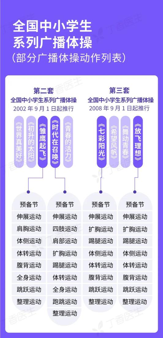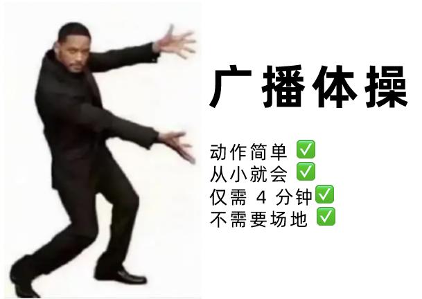 但不管你做哪一套,广播体操都能活动到全身几乎所有的大关节和周围的肌肉,涉及全身各个部位的伸展和旋转,算得上是一种比较高效的活动方式。