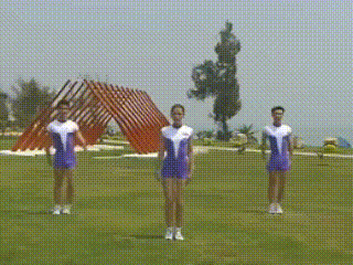 广播体操中,还可以有武术冲拳和和踢腿动作。