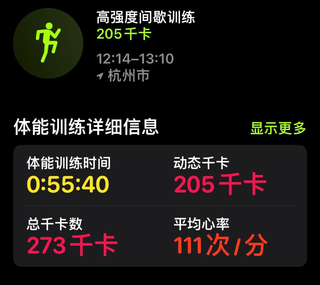 粗暴的换算成 1 小时的话,大约是 416 千卡。要知道,我本人 1 小时高强度间歇运动也才消耗 300 千卡左右。
