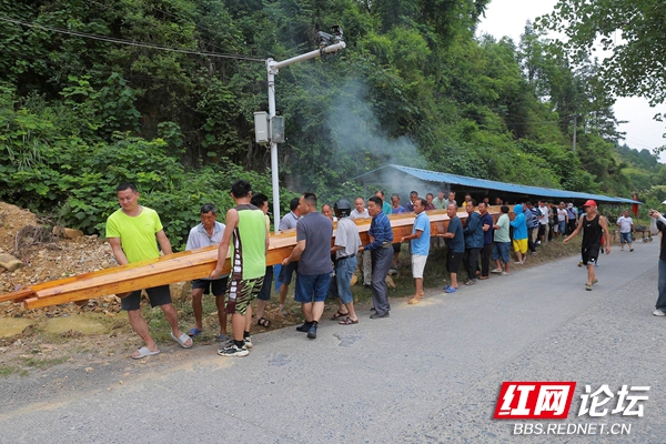 村民将龙舟从棚子抬出来。(图文/麻阳文宣)