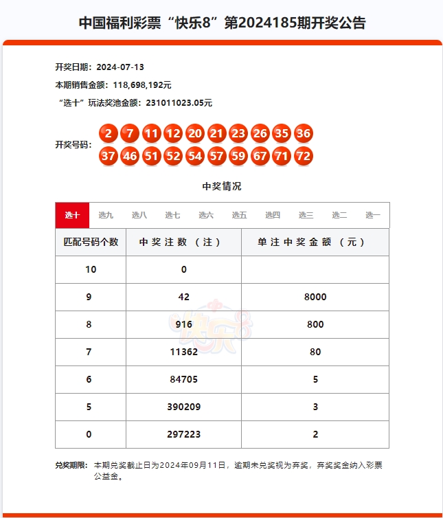 2024年7月13日中国福利彩票开奖信息