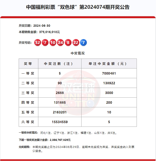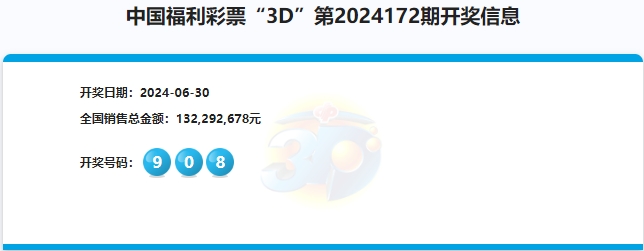 2024年6月30日中国福利彩票开奖信息