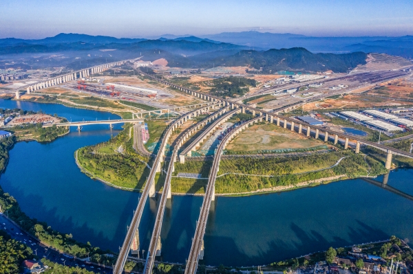 2021年航拍怀化国际陆港。田文国摄2022年怀化—万象长寿麻阳产品出口东盟班列首发。张杰摄