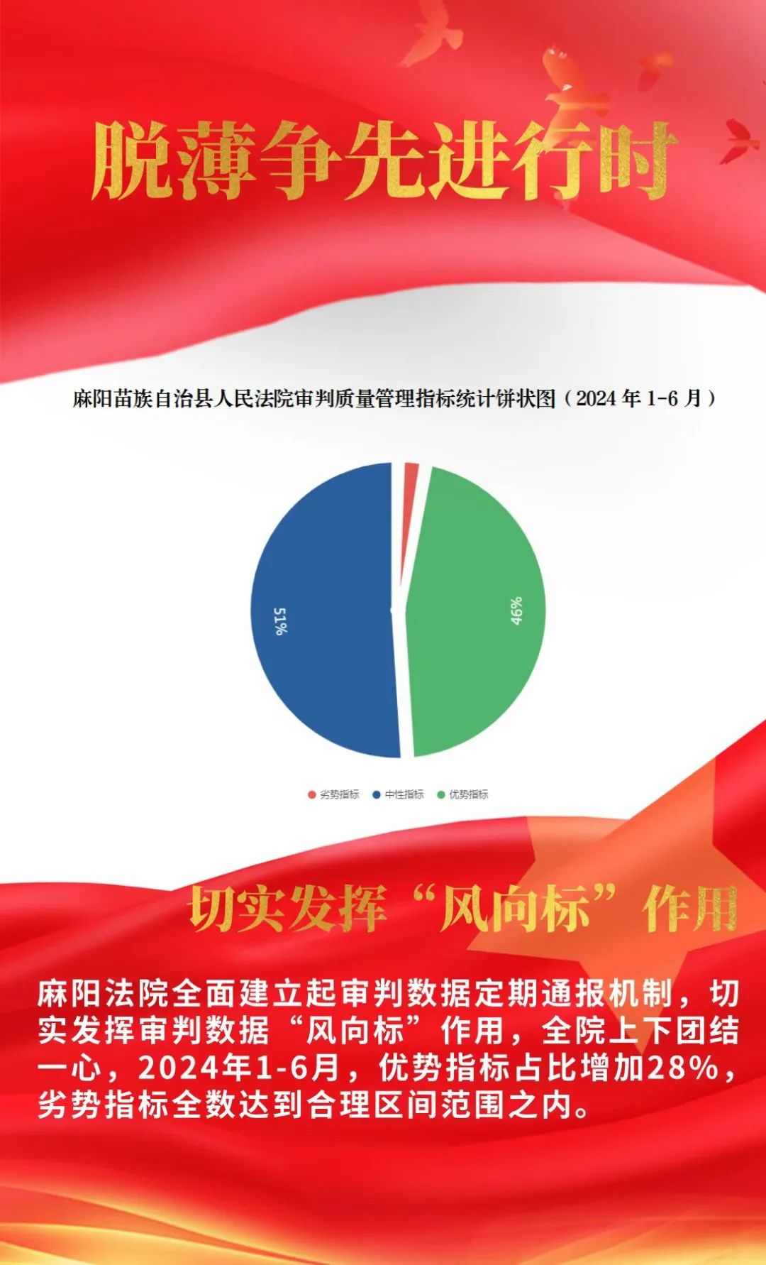 自被确定为全国首批薄弱法院以来,麻阳苗族自治县人民法院聚焦“脱薄”总目标,弘扬“争先”主基调,深挖薄弱症结,补齐短板弱项,多措并举图自强,踔厉奋发勇担当,坚持将讲政治、抓党建、强业务融为一体,在四级法院联动下,奔向脱薄“康庄大道”。