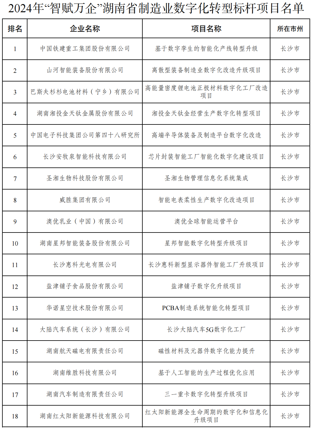 8月27日,湖南省工业和信息化厅发布《关于2024年“智赋万企”湖南省制造业数字化转型标杆项目名单的公示》,经企业申报、市州推荐、形式审查、专家评审,共遴选了162个湖南省制造业数字化转型标杆项目,现予以公示。其中,长沙的企业有46家上榜,一起来看~