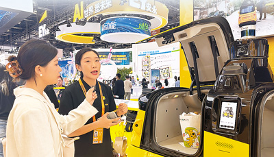 在服贸会美团展区,以自研L4级自动驾驶软硬件技术为关键的自动配送车也备受关注。美团工作人员介绍,自动配送车可克服老城区、晚高峰、夜间集市等复杂路况,并高效应对夏季多雨天气带来的技术和试运营挑战,为居民提供生鲜食杂的常态化自动配送服务。截至2023年底,自动配送车自动驾驶里程占比超过99%,完成室外全场景配送近400万单。