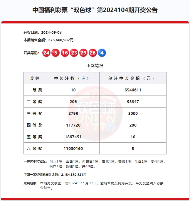 2024年9月8日中国福利彩票开奖信息