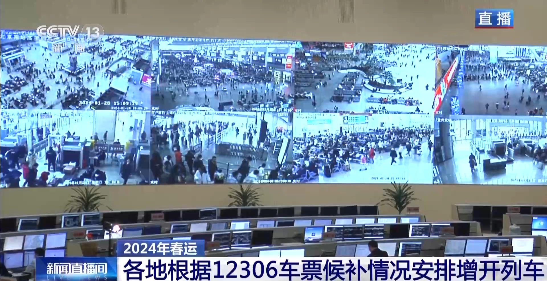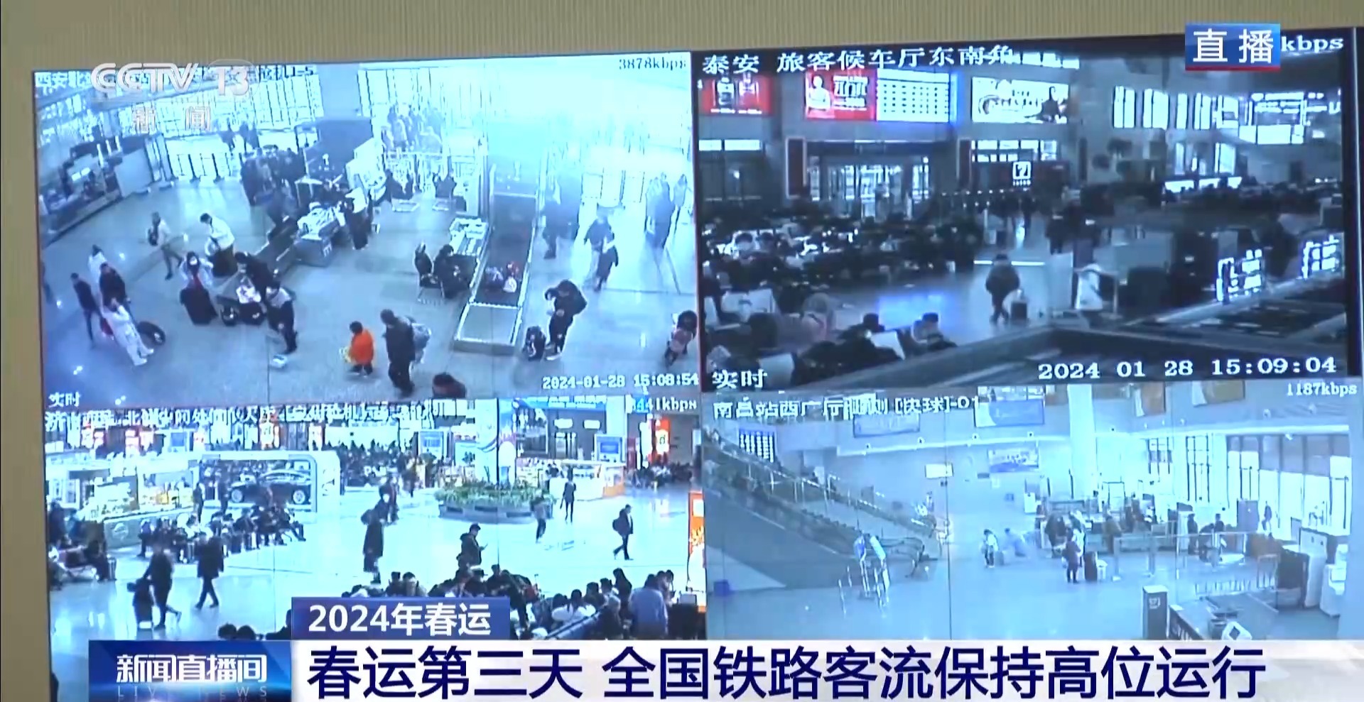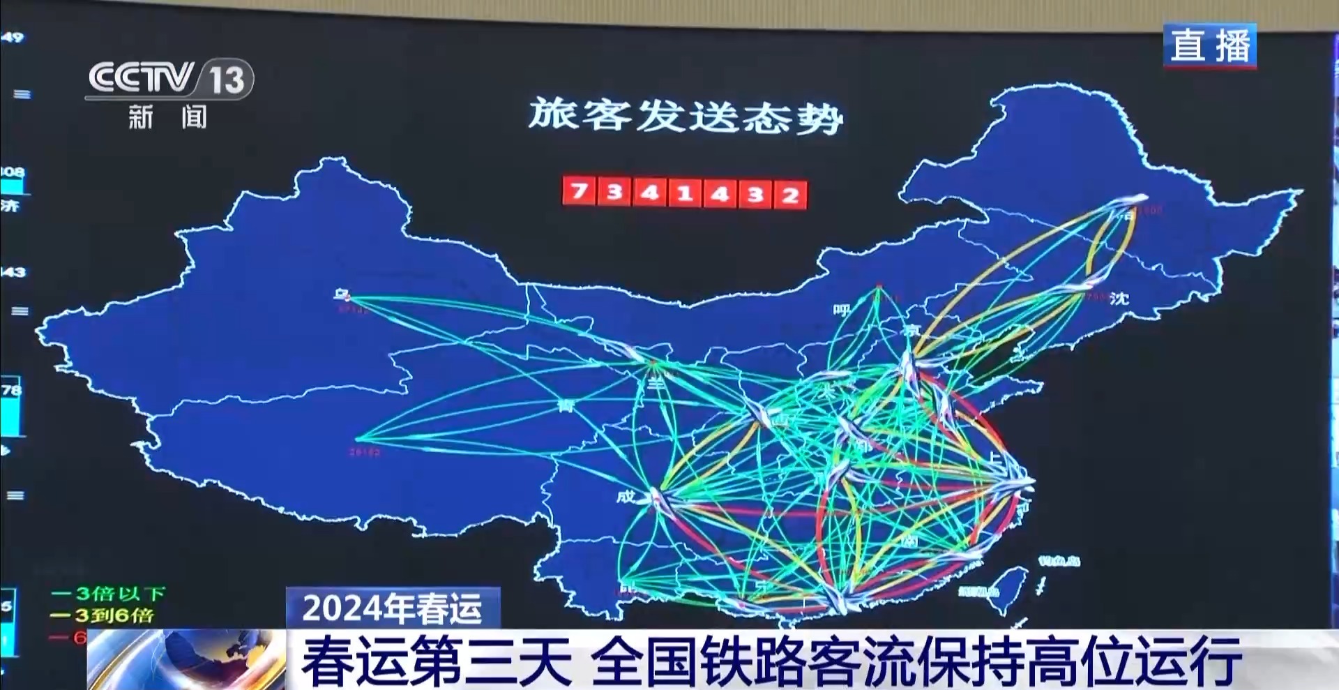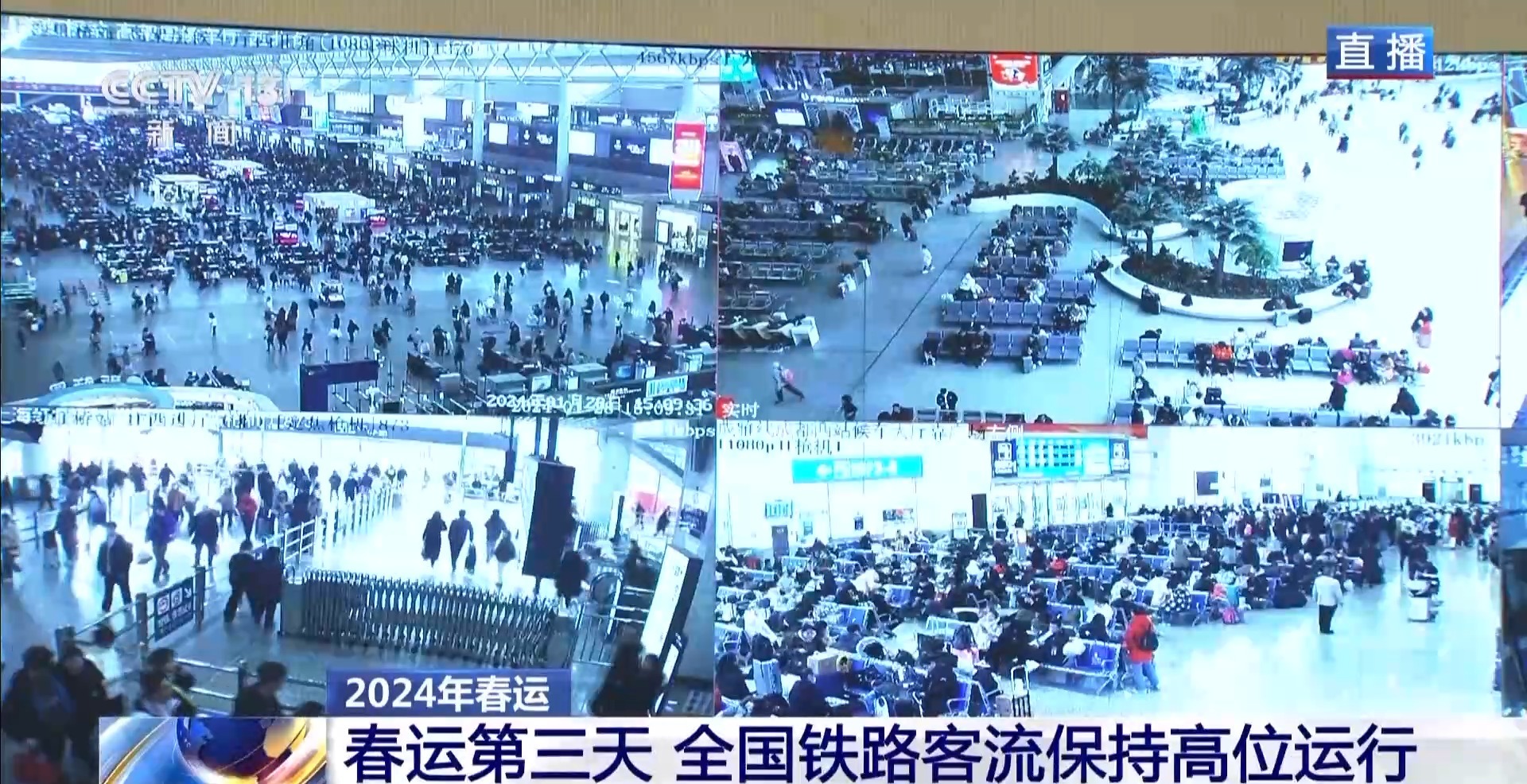 总台央视记者 杨丽君:春运第三天,铁路客流持续高位运行。昨天全国铁路发送旅客的实际数字是1213.6万人次,今天预计发送旅客在1185万人次,基本是平稳的状态。