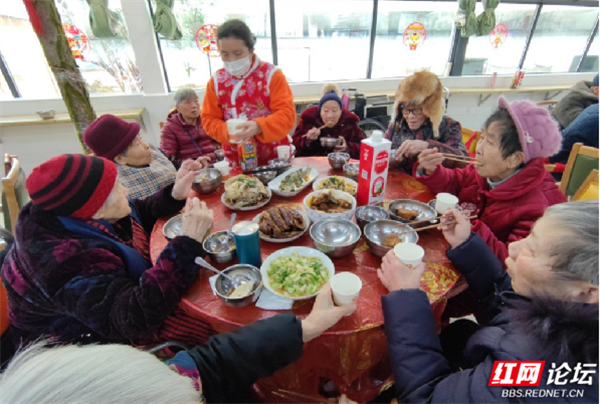 年的味道一年一次,家的温暖天天都有。在养老院这个大家庭里,除了美味大餐,还自编自导为老人们准备了精彩的节目,红彤彤的围巾映衬着老人们喜洋洋的笑脸,明艳艳舞动的身影交相辉映……一幅幅温馨的画面让年味更加浓郁,也为这年的味道增添了一份别样的色彩。