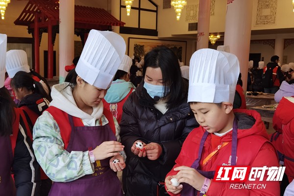 学生们亲手参与制作葱油饼、熊猫汤圆。