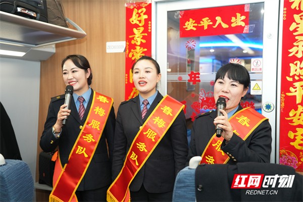 当晚,“雷锋号”列车迎来3名特殊的旅客,她们是湘西公益性“慢火车”“春梅服务队”的骨干成员。2022年度“最美广铁人”程雅婷、“春梅服务队”队长傅白莲与队友一起,向列车员和旅客们分享“春梅服务队”投身公益事业、服务乡村振兴的故事,引来掌声不断。
