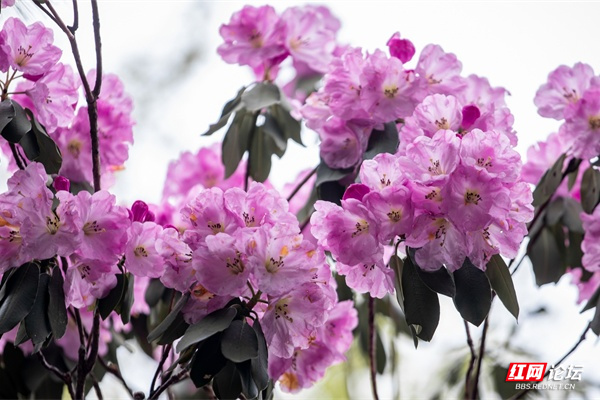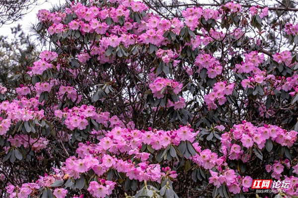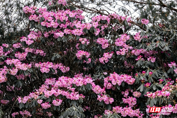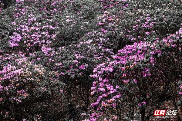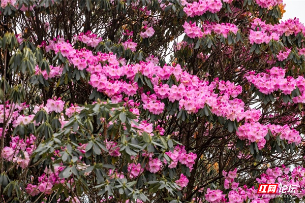 ▲图说:近日,炎陵县策源乡梨树洲千亩云锦杜鹃花依次绽放。云锦杜鹃在《中国高等植物图鉴》的记载中,属于杜鹃花中的佼佼者,为中国特有的珍贵树种。