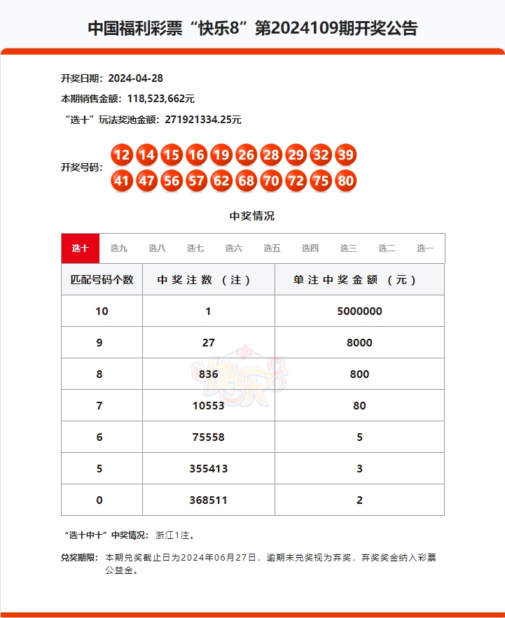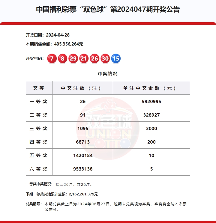 2024年4月28日中国福利彩票开奖信息