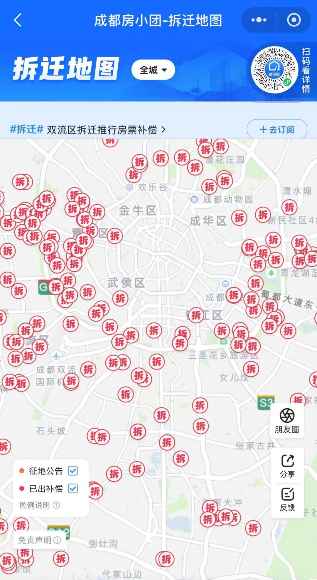 记者查询该图片来源小程序(成都房小团)并对照相关政府官网文件发现,相关拆迁项目存在,但并非网传的近日突然集中爆发,而是一年内或更长时期内陆续产生的。