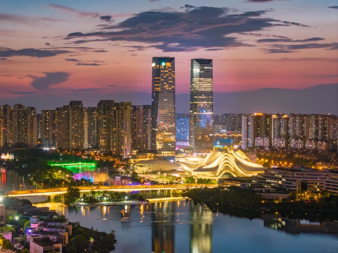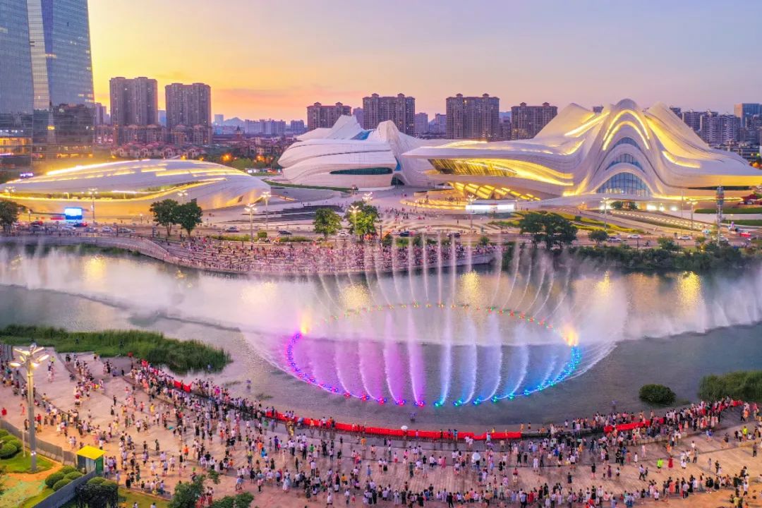 风云变幻,时代指针指向21世纪,发展蝶变就在瞬间:一泓碧波画下长沙西拓战略中心点,梅溪湖国际文化艺术中心、金茂双子塔、亚洲最长的音乐喷泉、世界上最大的双螺旋钢结构建筑等,一个个城市地标在梅溪湖周边飞速崛起……车水马龙、灯光十里,璀璨都市写就一城繁华,“全国绿色生态示范城区”“国家智慧城市创建试点城区”等一块块招牌越擦越亮。