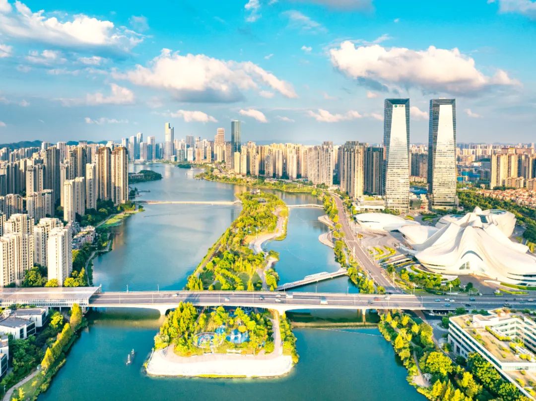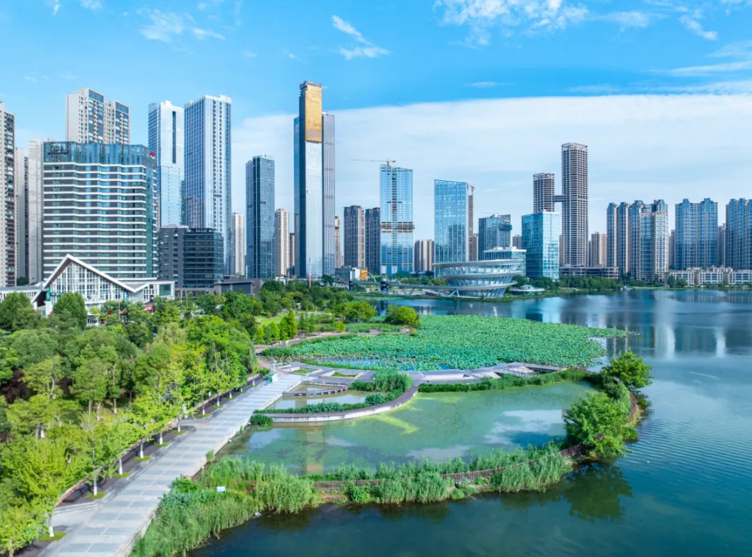 如今,梅溪湖二期城市天际线错落有致。蓝天白云、商务楼宇与湖边光景相映成趣,一幅山水洲城美景图铺陈开来,梅溪湖畔“水光潋滟晴方好,山色空蒙雨亦奇”……