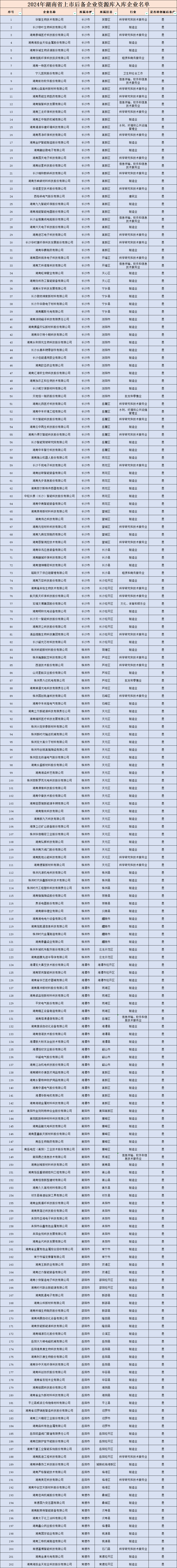 附:2024年湖南省上市后备企业资源库入库企业名单