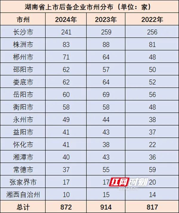 10月10日,湖南省委金融办对2024年湖南省上市后备企业资源库入库企业名单进行公示,共有872家企业入库。