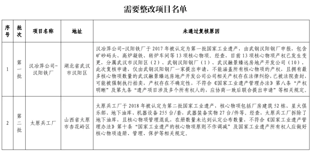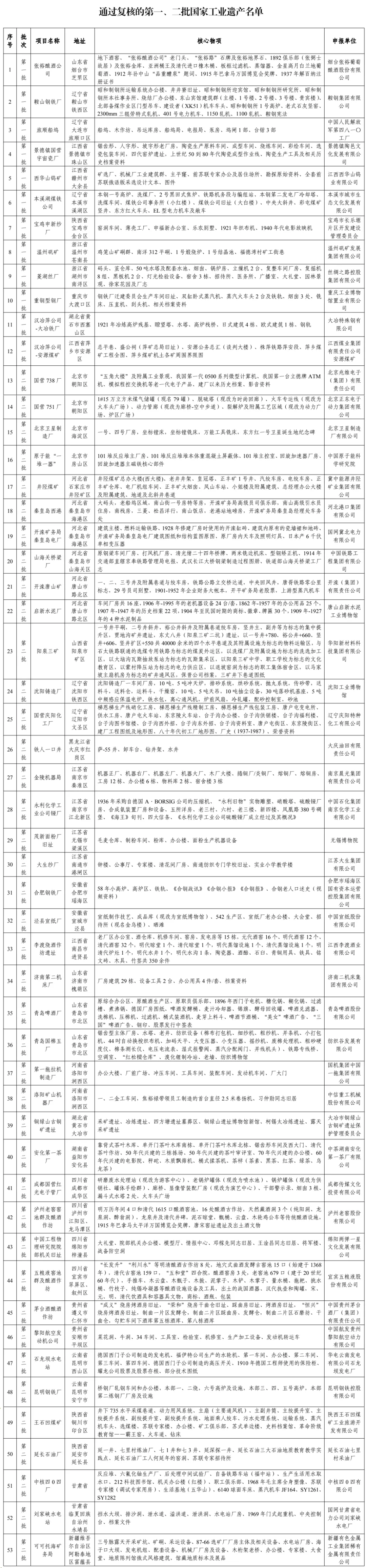 2.通过复核的第一、二批国家工业遗产名单