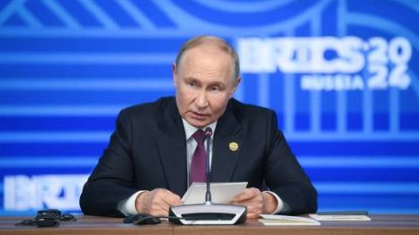 当地时间10月24日,俄罗斯总统普京就喀山金砖峰会举行记者会。