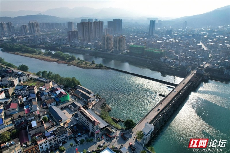 ▲图说:慈利县城是一个典型的山水洲城,四面环山中间一个小盆地。从高空俯瞰,一栋栋崭新的楼房,夜晚波光粼粼的澧水河面,动人的音乐喷泉和靓丽的沿河风景带,一座山水洲城正蝶变重生。