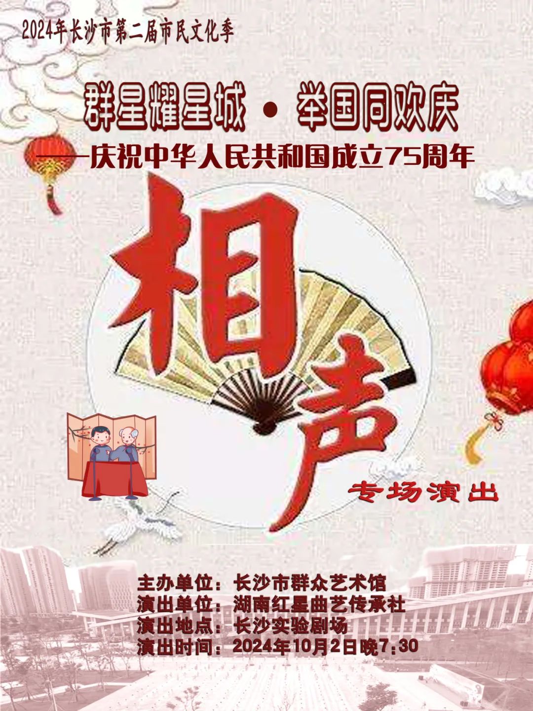 10月2日晚,长沙实验剧场将上演一台精彩绝伦的传统相声盛宴 ——“群星耀星城·举国同欢庆”湖南红星曲艺传承社传统相声专场,欢迎观看。