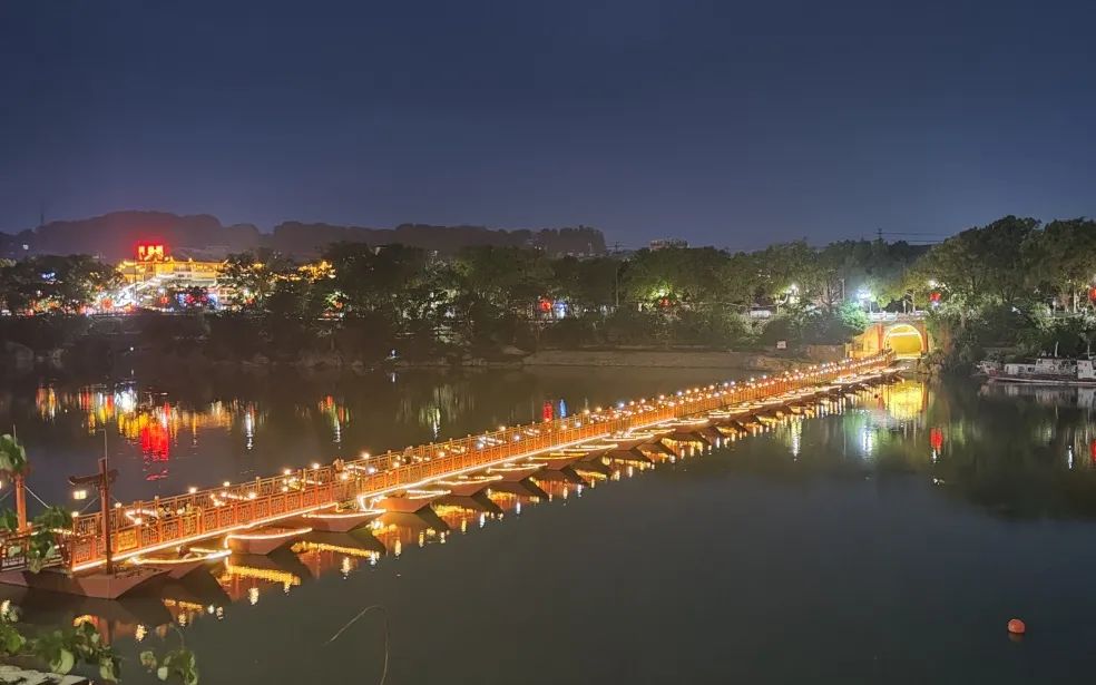 霞客渡古浮桥的历史最早可追溯至元朝,为永州五大古渡之一,得名于徐霞客来永探访游历,是湘桂古道上的重要渡口,碧绿潇水、青葱两岸,行走桥上,一幅“舟行碧波上,人在画中游”的诗情画卷油然而生。