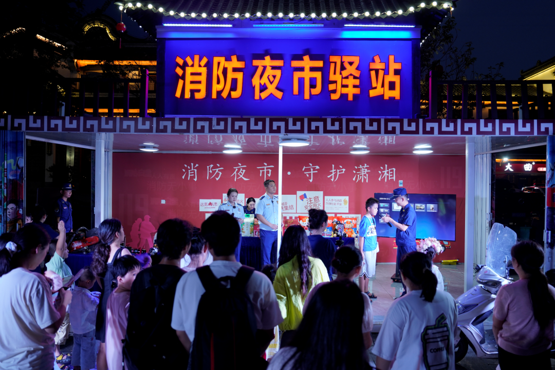 零陵古城夜市消防驿站,顶部采用仿古楼牌设计,与零陵古城融为一体,外立面绘有消防涂鸦壁画,是消防夜市活动的固定场地、专属阵地。