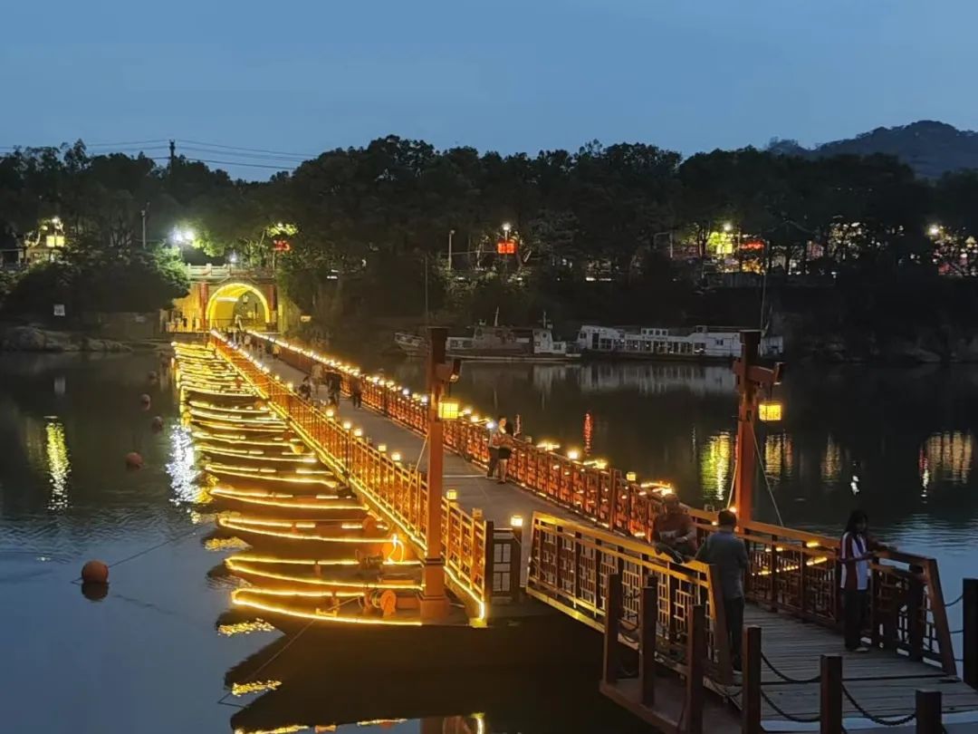 蓝叔安全游玩小贴士:霞客渡古浮桥离水面较近,且桥墩为浮船,在此类涉水场所游玩时,还请留意跌落、落水、溺水风险,不要为打卡拍照做出违规、危险行为。