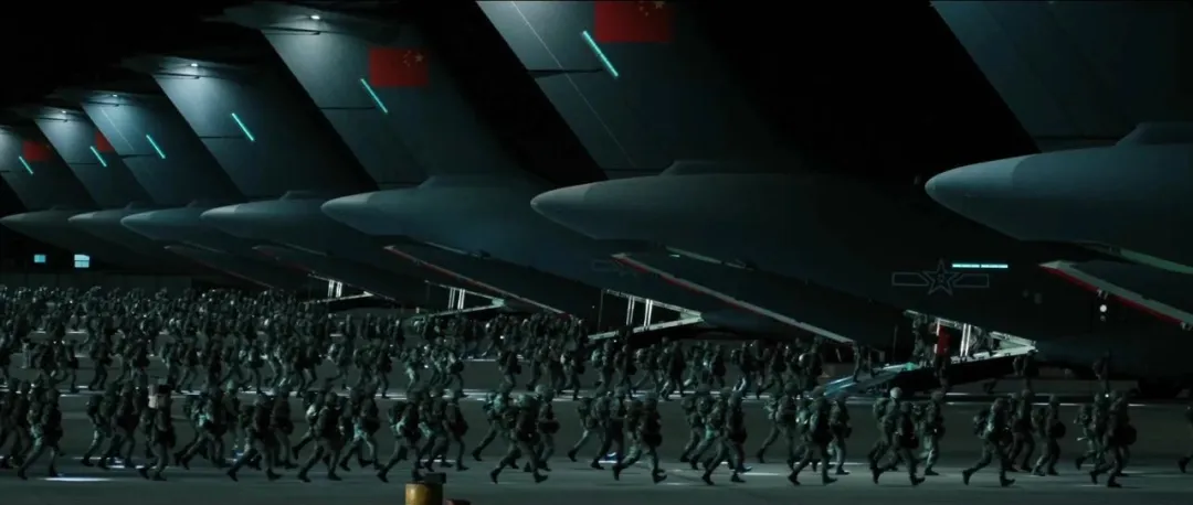 片中多次出现运-20大规模出动以及在夜晚进行空投空降的训练画面。
