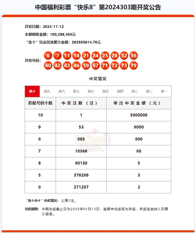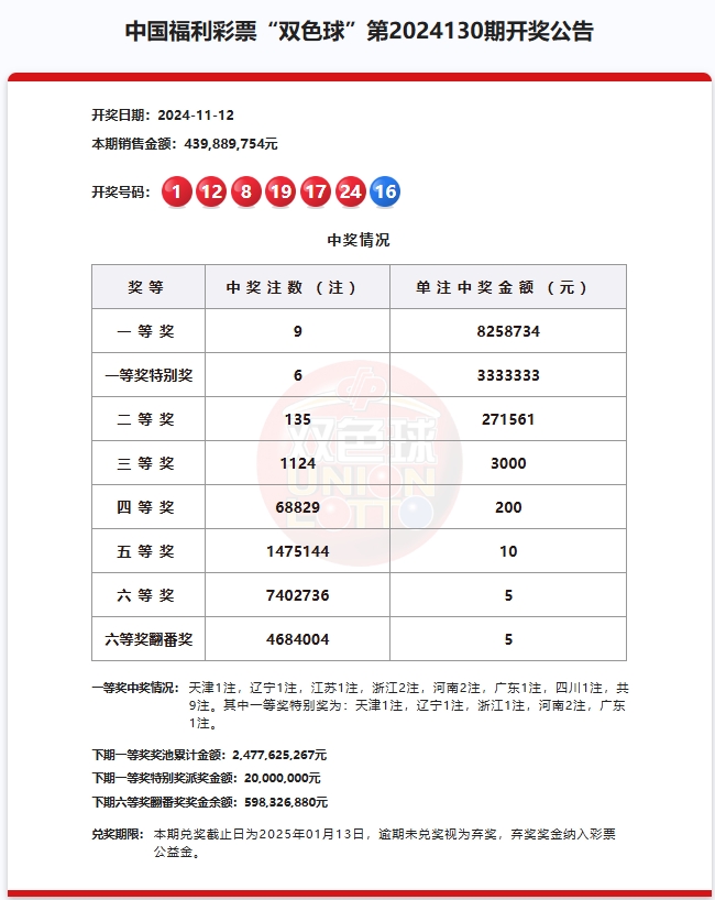2024年11月12日中国福利彩票开奖信息