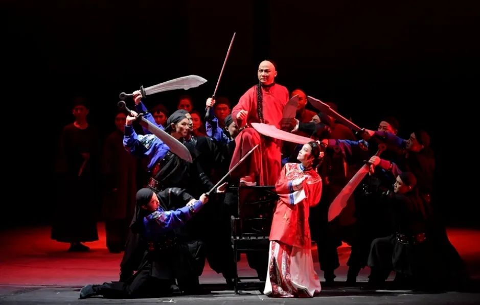 ▲新编京剧《皿方罍》剧照。(图源:湖南省京剧保护传承中心)新编京剧《皿方罍》融合传统京剧唱腔和现代舞美创作,叠加昆曲、湖南民歌、西方乐器等多种元素,生动演绎“国宝”艰难归家路。长沙花鼓戏《火宫殿》,挖掘湖南地方戏曲精髓并融合现代音乐元素,满溢着烟火气。