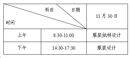 服装纸样设计和服装设计考试时间统一安排如下: