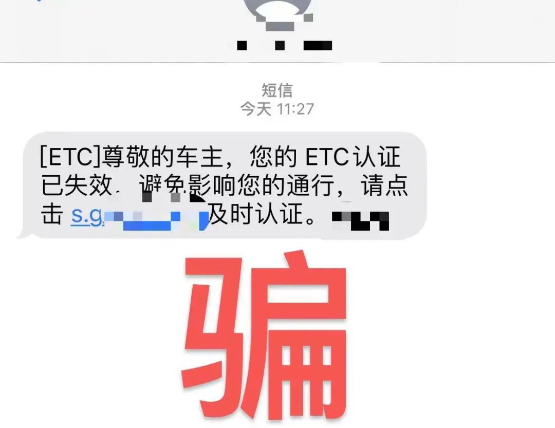 不法分子制作貌似“官方”的网站冒充正规的ETC平台,向车主发送“ETC过期认证、系统升级、卡被停用”等欺诈短信,并且附上假冒网站链接,若按照要求一步步操作,您的个人信息可能会被泄露,请大家一定要拨打官方电话进行询问,或者去线下营业厅进行咨询。