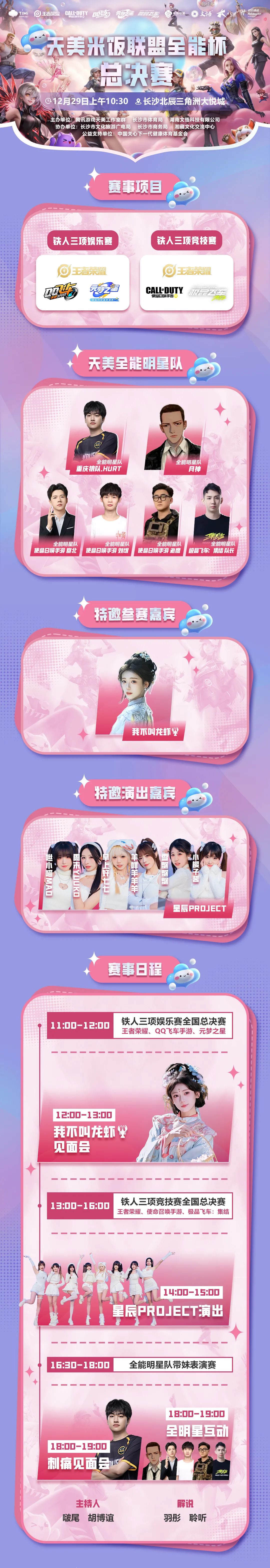 12月29日,腾讯游戏天美工作室群旗下米饭联盟全能杯“铁人三项”大赛总决赛,将在长沙北辰三角洲大悦城L1阳光长廊南区举行。大赛涵盖竞速类、竞技类、射击类这三大品类,以其专业的赛事标准与丰富的竞赛内容覆盖全国50所高校,将“铁人三项赛事”作为经典IP赛事进行传承。