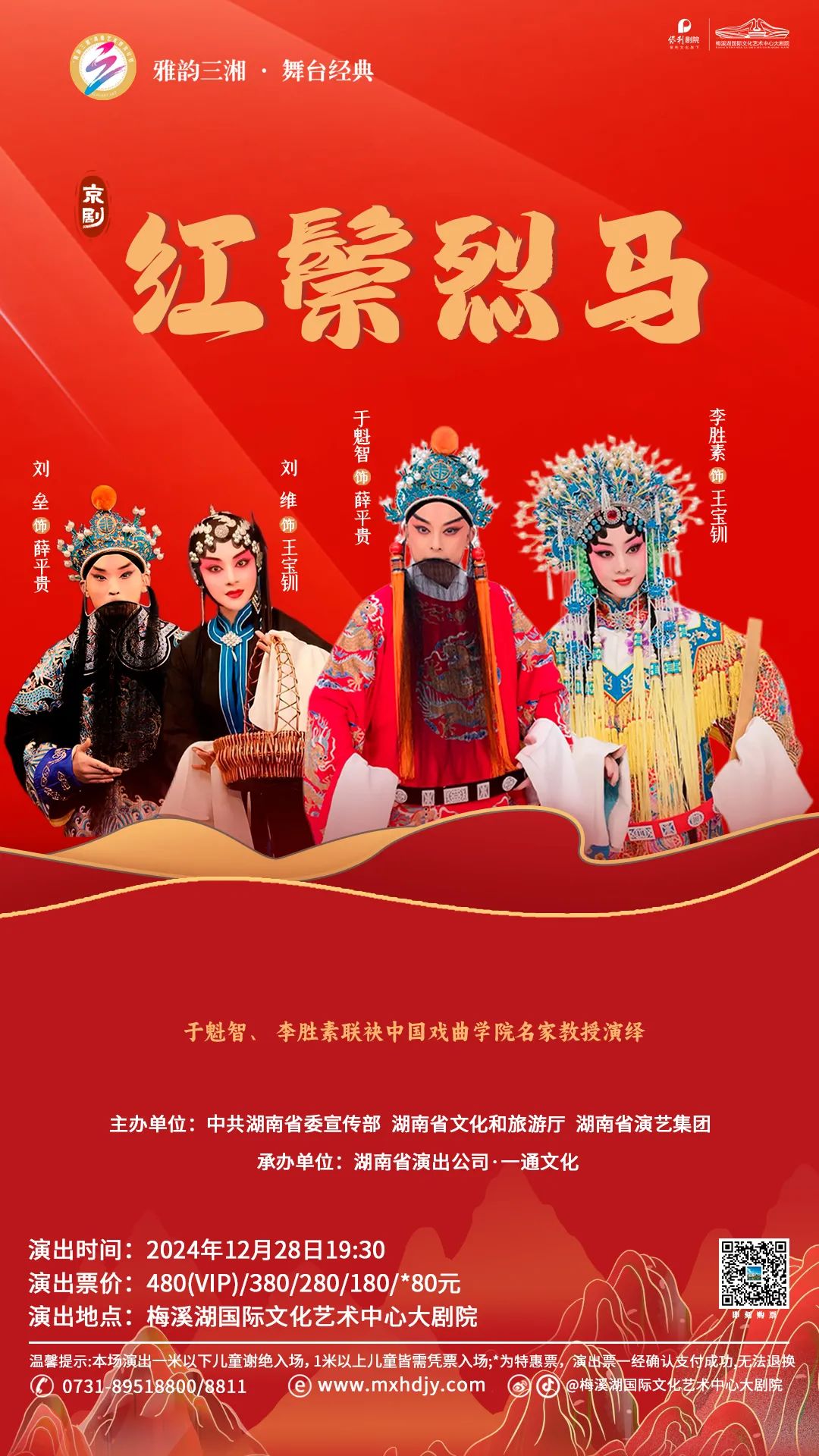 本次演出的《红鬃烈马》共四折(“武家坡”“算军粮”“银空山”“大登殿”),由著名京剧表演艺术家于魁智、李胜素领衔主演,携国家京剧院优秀老生演员刘垒、中国戏曲学院优秀旦行教师刘维共同饰演薛平贵、王宝钏,并与众多中国戏曲学院名家教授联袂演出。