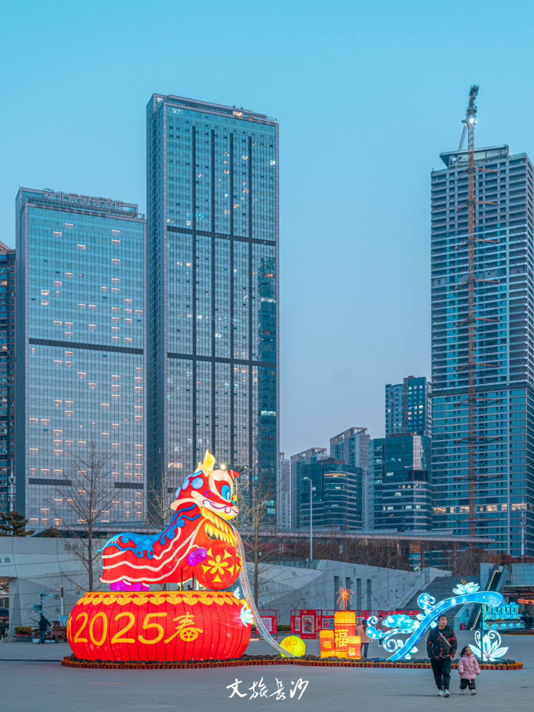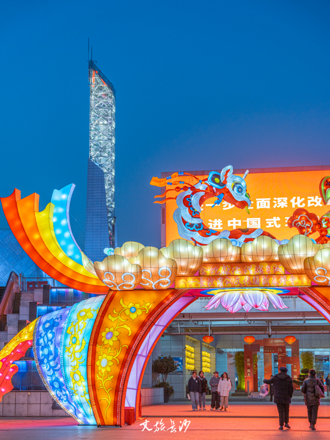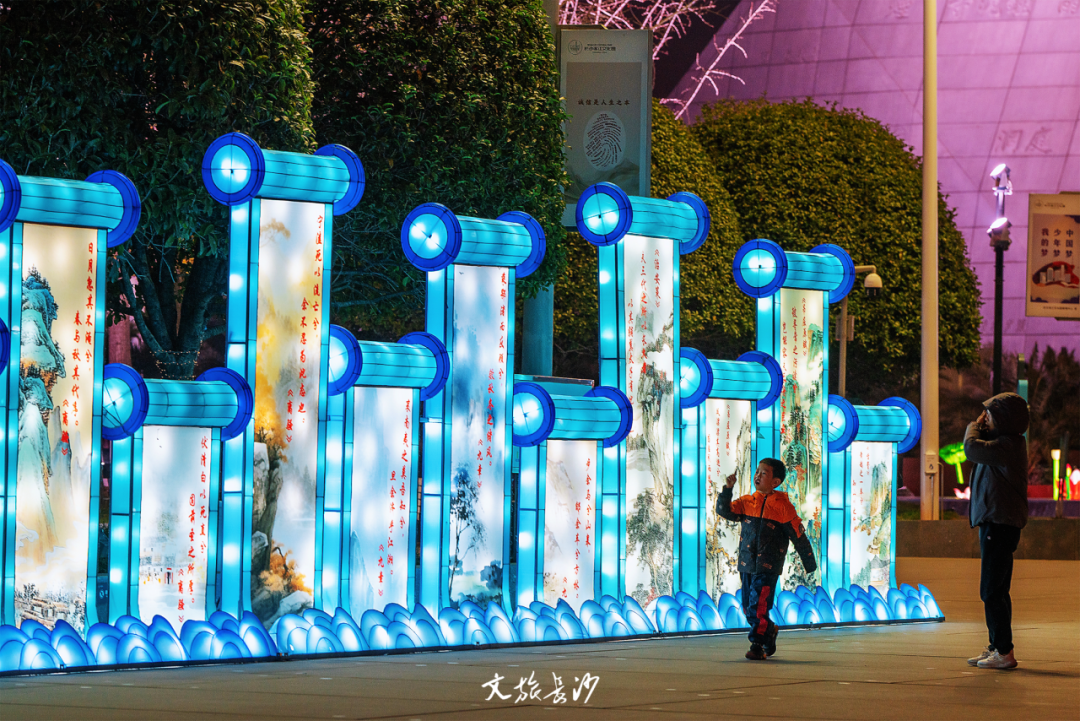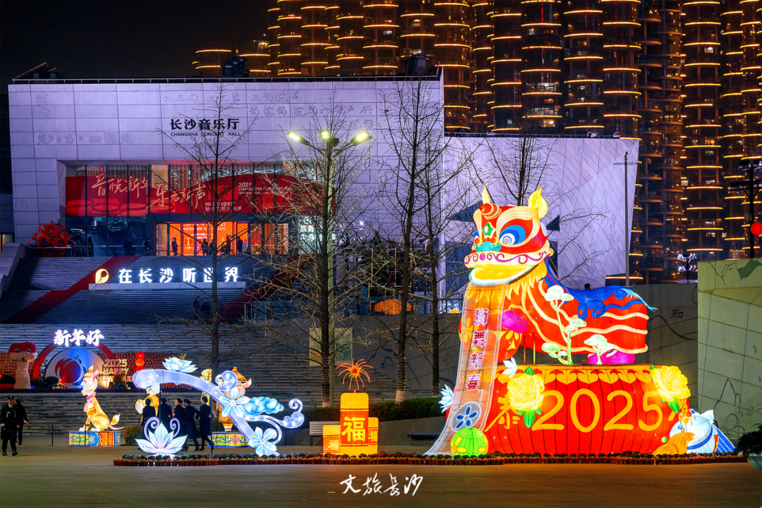 与此同时,长沙音乐厅外的滨江文化园,“金蛇献瑞 灯耀星城”新春灯会同步进行,国潮浪漫在滨江文化园的夜色中弥漫,展示了不一样的星城范。